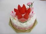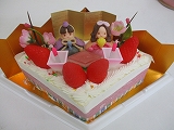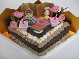 ひな祭りのデコレーションケーキをショーケースに飾ってます。ご予約を承り中です。